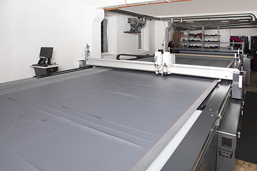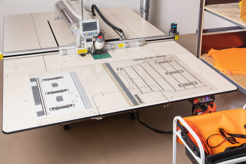 Раскройный участок швейного производства для раскроя элементов спасательных жилетов, ходовых, стояночных и прочих тентов для надувных лодок, различных аксессуаров для лодок и моторов в год в сумме перерабатывает около 1 млн. кв. м. различных материалов и оснащен промышленной машиной многослойного автоматического цифрового раскроя с интеллектуальной системой управления, позволяющей производить раскрой многослойных настилов любых текстильных и мягких материалов толщиной до 90 мм. Машина оборудована высокоскоростным осциллирующим ножом, позволяющим кроить с высокой скоростью, качеством и точностью. Помимо всего прочего, она имеет функции охлаждения лезвия и его автоматической заточки, а также конвейерную зону выгрузки кроя.